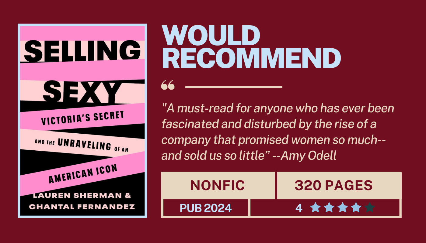 I find the story of Les Wexner’s empire to be incredibly, darkly fascinating. I absolutely devoured the documentaries about both Victoria’s Secret and Abercrombie & Fitch. For anyone who grew up in the early 2000s, these mall brands were the backdrop of our childhoods. For me, they were also an emphasis on the ways I did not fit in. Wexner’s portfolio of brands is dark and twisty, a uniquely American encapsulation of consumerism and entrepreneurship. This book gives us a deep look into the inception, creation, and progression of Victoria’s Secret as a brand. I went to school for fashion, and the fashion history nerd inside of me loved the more technical aspects of the first parts of the book. Only later does it get into more of the pop cultural relevance, like the Angels and VS Pink. If you have any interest in the subject, I’d certainly recommend this book. Read when you’re ready to find a new underwear brand (if you haven’t already).