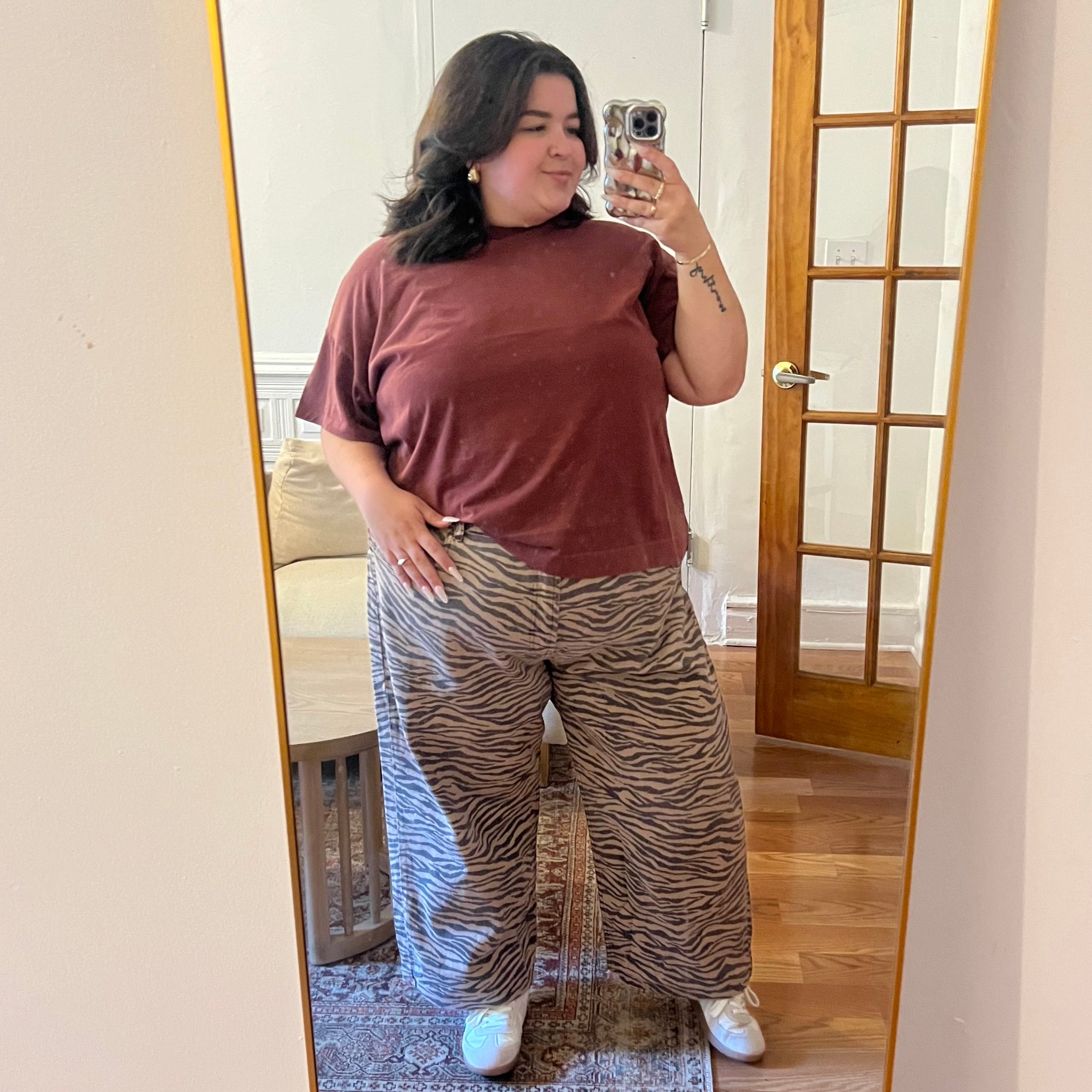 Animal print will serve as an on-trend neutral this fall (but let’s be real, does it ever really go out of style?) and I felt confident about the cost per wear of these jeans as my animal print pick for the season. Baggy jeans are all the rage right now, and while GAP jeans aren’t relevant to anyone above a size 12, Troye Sivan doing that lil dance did still make me want to get loose, so to speak. They’re a little more low rise than I’m used to, but I actually really like where they sit on my hips. They also come in zebra + leopard!