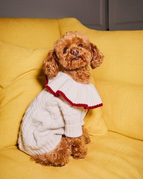 Dogs are having a huge moment in fashion this year. A few months ago we had Dogue + the NY Mag very creepy pets spread released in the same week. This week, Aritzia released puffers for dogs (Super Ruff Puff) inspired by their very popular Super Puff coats, Reformation released a knit collection collab inspired by playing cards (love that inspo) that includes a dog sweater, and my personal fave Ester Manas released “Everybody Every Doggy” t-shirts