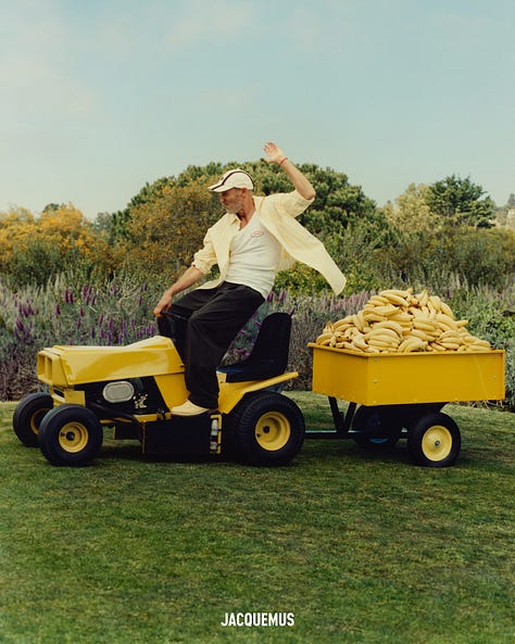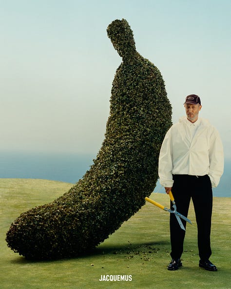 This comes on the heels of Jacquemus’s spring campaign featuring White Lotus’s John Gries and, of course, bananas.